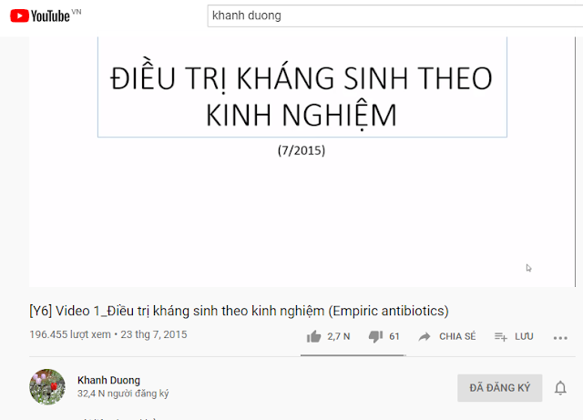 Đã xem kênh này thì không thể bỏ qua list video” hướng dẫn điều trị kháng sinh theo kinh nghiệm”.