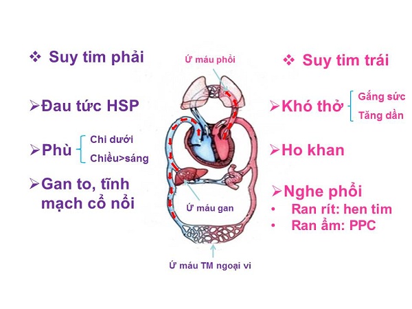 Vì tâm thất phải tống được ít máu đi hơn nên dần dần máu bị ứ lại ở tâm nhĩ phải → tiếp tục ứ ở tĩnh mạch chủ dưới, tĩnh mạch gan và ở gan. Mặc dù là nơi dự trữ máu của cơ thể nhưng khi bị ứ máu quá nhiều, gan sẽ to lên và ta có thể sờ được khi khám bệnh nhân trên lâm sàng.