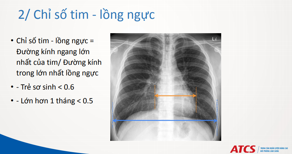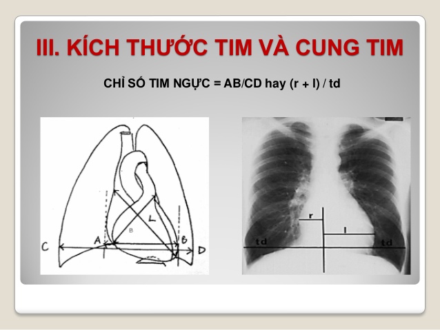 Chỉ số tim – lồng ngực = Đường kính ngang lớn nhất của tim/ Đường kính trong lớn nhất lồng ngực