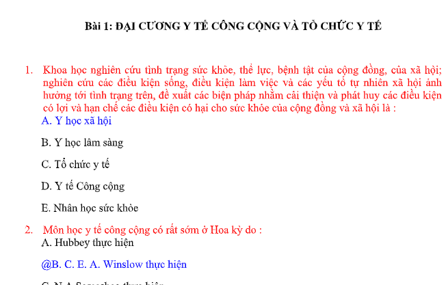 Hôm nay mình sẽ giới thiệu đến tất cả các bạn sinh viên tài liệu full trắc nghiệm tổ chức và quản lý y tế có đáp án.