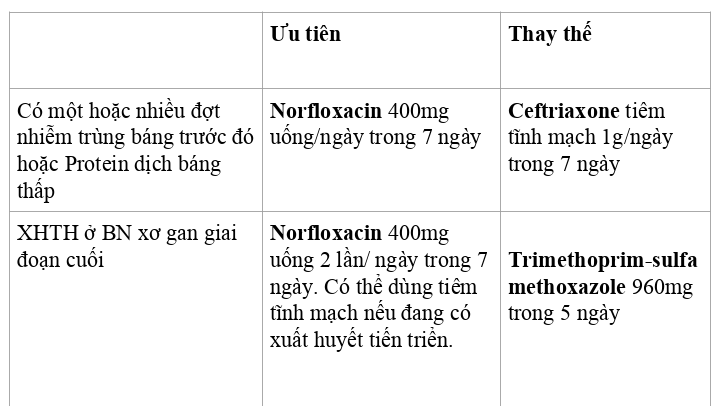 Lựa chọn kháng sinh nào trong điều trị dự phòng NT báng ?
