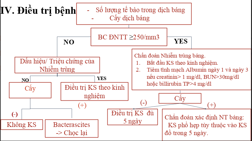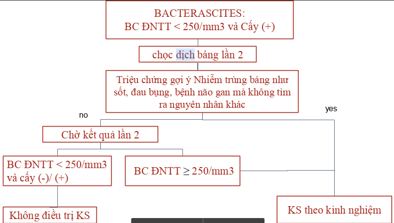 Tất cả bệnh nhân nghi ngờ có NT báng có BC ĐNTT trong dịch báng ≥ 250/mm3 thì nên được điều trị bằng KS theo kinh nghiệm ngay.