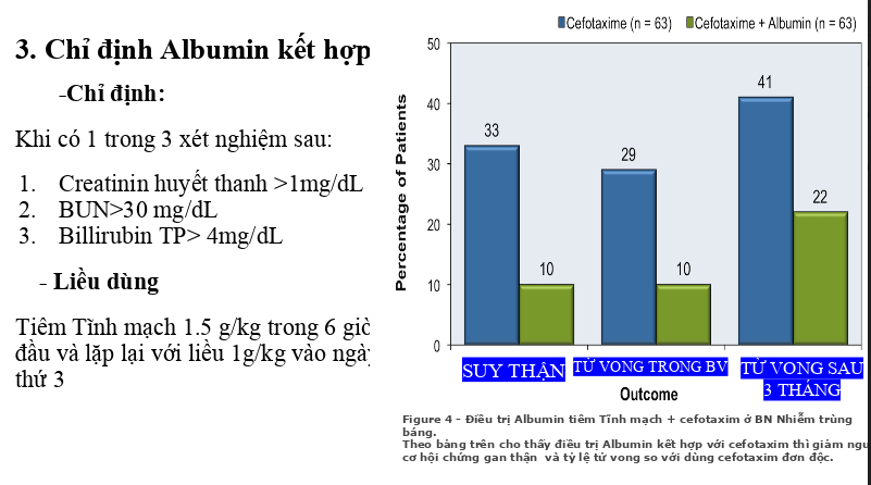 Bạn để ý thấy người ta bù albumin với kháng sinh để điều trị NT báng. Hãy nhớ lại các yếu tố làm dễ để bệnh nhân bị NT báng. Albumin thấp là một trong số đó.
