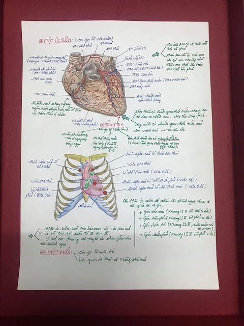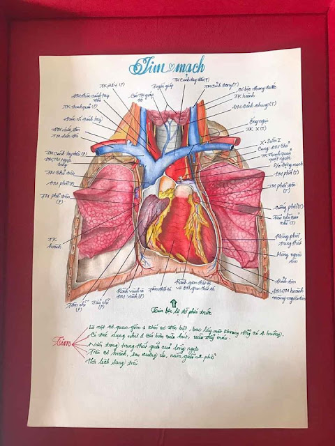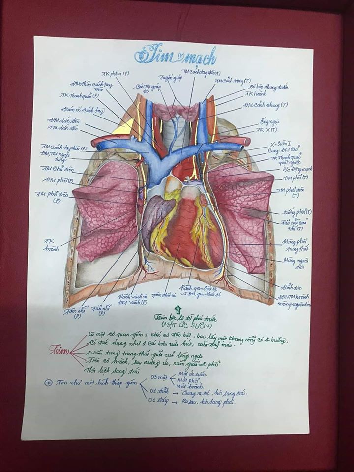 giải phẫu tim phổi, lồng ngực. Phối màu rất chuẩn, nhìn như atlas
