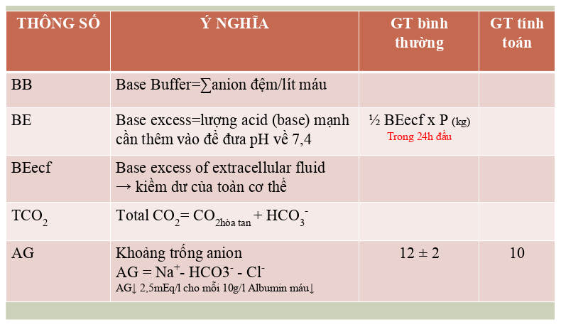 Ý nghĩa các thông số khí máu động mạch:
