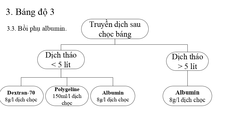 Chọc tháo báng lượng lớn (LVP) là biện pháp điều trị chính đối với báng độ 3.